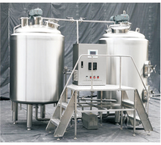 精釀啤酒實驗設備包括機架和安裝在機架上的冰水罐、糖化罐、發(fā)酵罐和冷卻系統(tǒng);產(chǎn)品的冰水罐有冰水內(nèi)罐和冰水外罐,冰水內(nèi)罐和冰水外罐之間安裝有水處理裝置;產(chǎn)品的冰水內(nèi)罐和糖化罐之間、糖化罐和發(fā)酵罐以管道相連,管道上安裝有閥門、流量計和麥汁泵;產(chǎn)品的糖化罐和發(fā)酵罐中安裝有攪拌機、加熱機構、溫度傳感器和冷卻機構,產(chǎn)品的發(fā)酵罐上還有觀察窗、出酒口、壓力表、壓力調節(jié)表和試酒口;產(chǎn)品的冷卻系統(tǒng)包括制冷機組、冰水泵、三通閥門、流量計、水壓表、安裝于糖化罐和發(fā)酵罐中的降溫盤管。精釀啤酒實驗設備適用于各種精釀啤酒配方的實驗和開發(fā),成本小,功能齊全。
